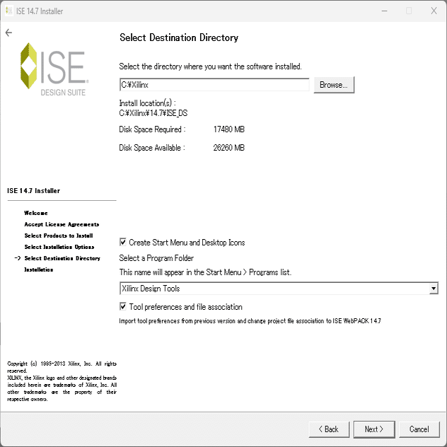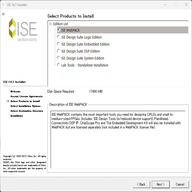 ISE Design Suite - 14.7 Full Product Installation の Windows 7/XP/Server 用フル インストーラ― を使います。