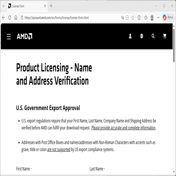 AMD のユーザ登録が必要です。