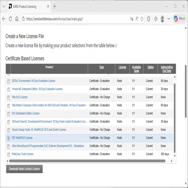AMD のサイトから、ISE アーカイブの 14.7 をダウンロードします。