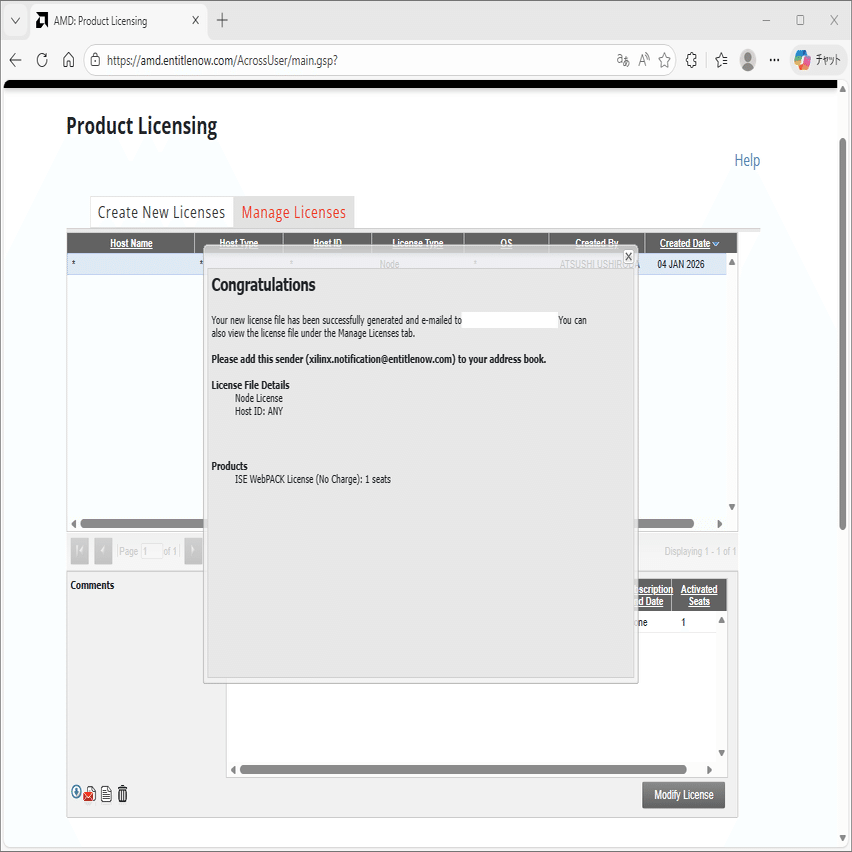 ライセンスファイルがメールで届きます。