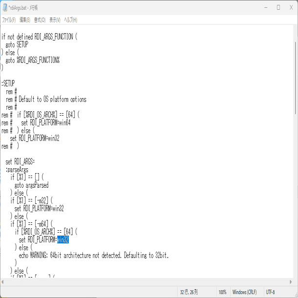 32 行の win64 を win32 に変更。