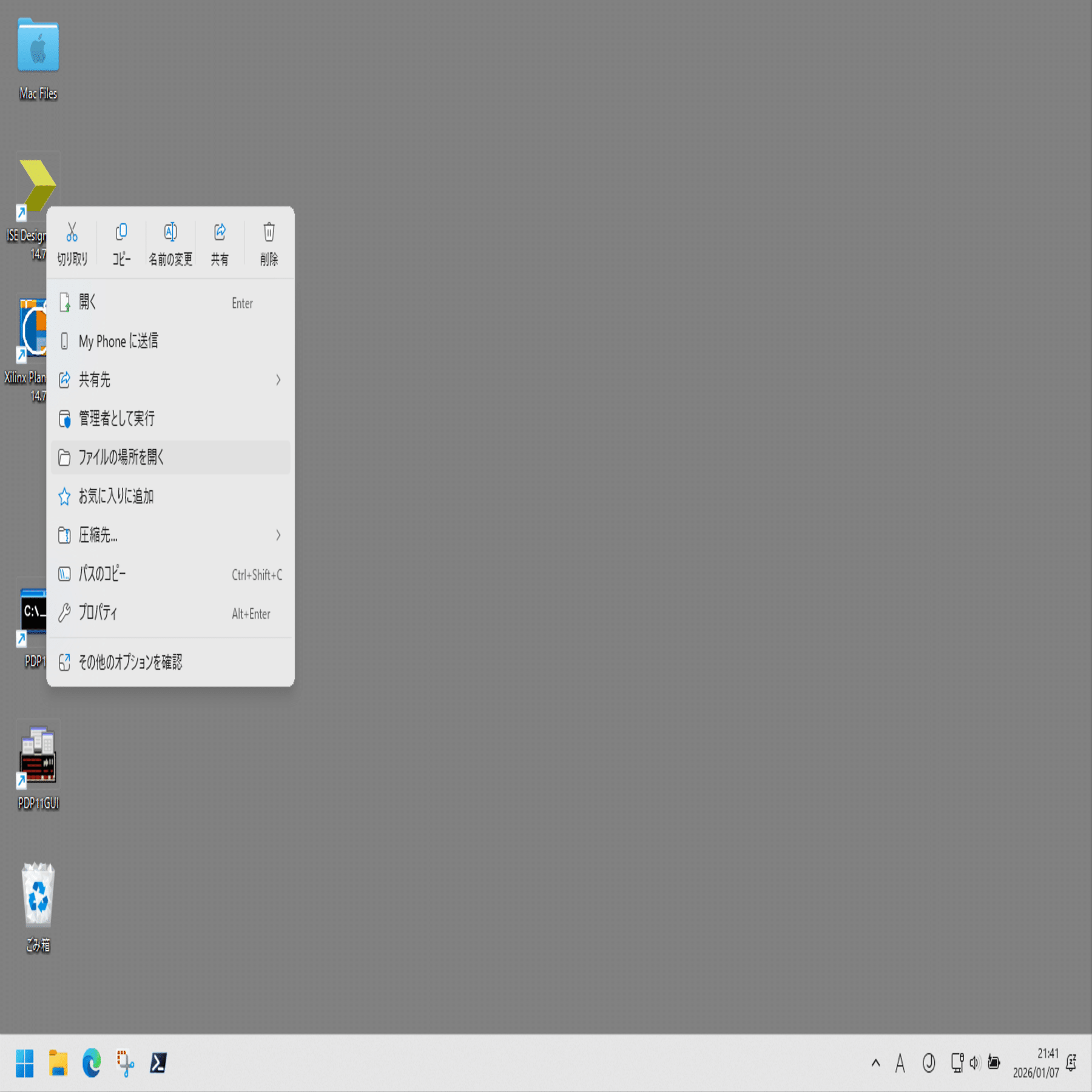 デスクトップの ISE Design Suite 14.7 のリンクを右クリックし、ファイルの場所を開く。