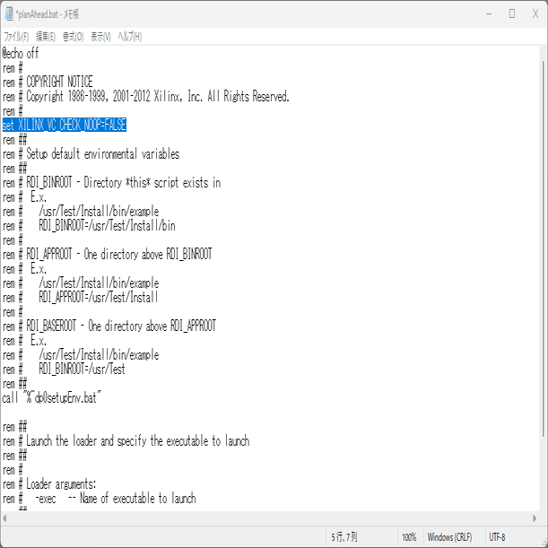 set XILINX_VC_CHECK_NOOP=FALSE を追加し、保存。