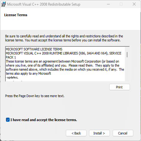 VC++ 2008 runtime libraries のチェックをしないように、環境変数を設定します。