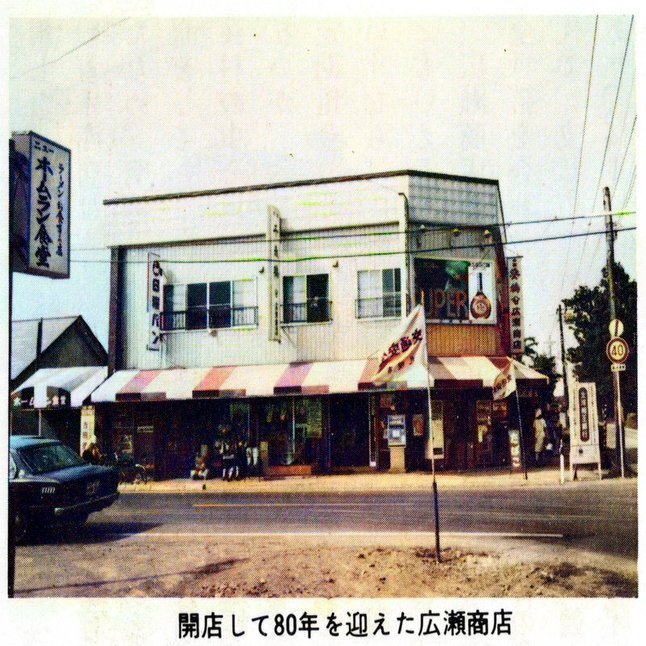 自分が知っている広瀬商店はこの外観だが、今はもう建物自体存在しない。閉店がいつ頃だったか覚えてないが、2012〜2014年くらいだったと思う。まもなく閉店だということを知らず、店に入ったが、もう商品はほとんどなく閉めるのかな?という雰囲気だったことは覚えている。80〜90年代ごろまで多くあった個人商店は廃業するか、コンビニに転換するなど形を変えていったが広瀬商店は120年近く生き延びていた。