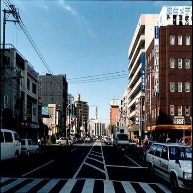 それから8年後くらいの写真。手前の野崎ビルはミズキ、野崎共同ビルになった。ここの郵便局開局が1984年なので、おそらくこのビルは1984年に建てられた。一時期ブックオフが入っていたことがある。(身内の会社がここに事務所を借りていたこともあるので一時期よく行っていた)