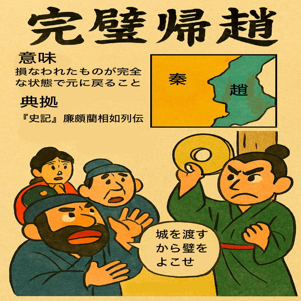 結果、秦も城を与えず、趙も璧を渡さず。しかし趙は貴重な璧を守り抜き、外交的敗北を回避した――これが「完璧帰趙」の典拠である。