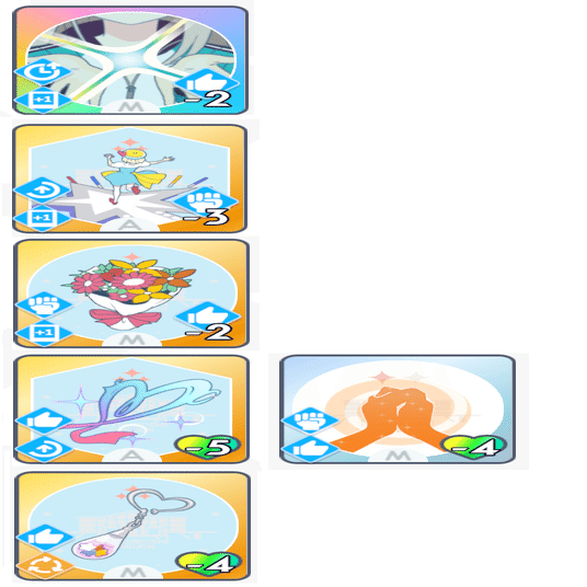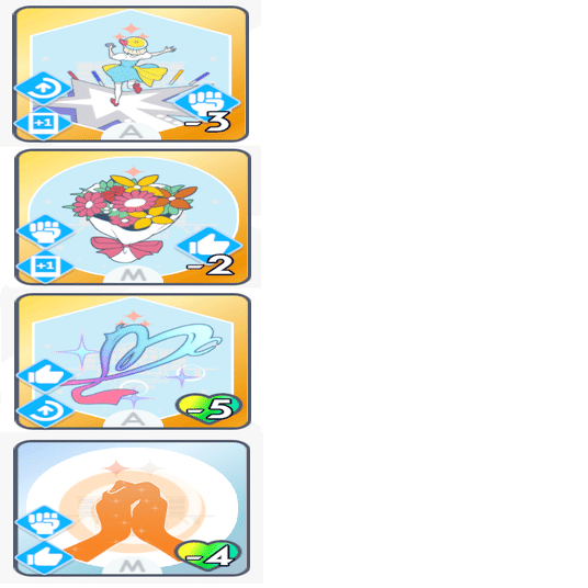 「ゆめみごこち」の使用コストの好印象が枯れないように、適度に好印象系のカードを使用していきます。(励ましやファンシーチャーム等)