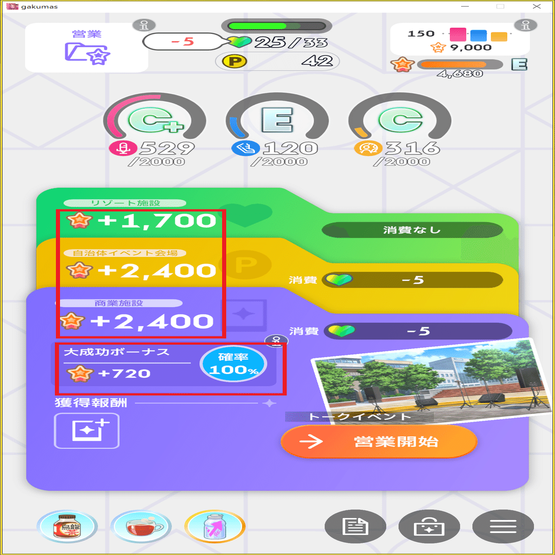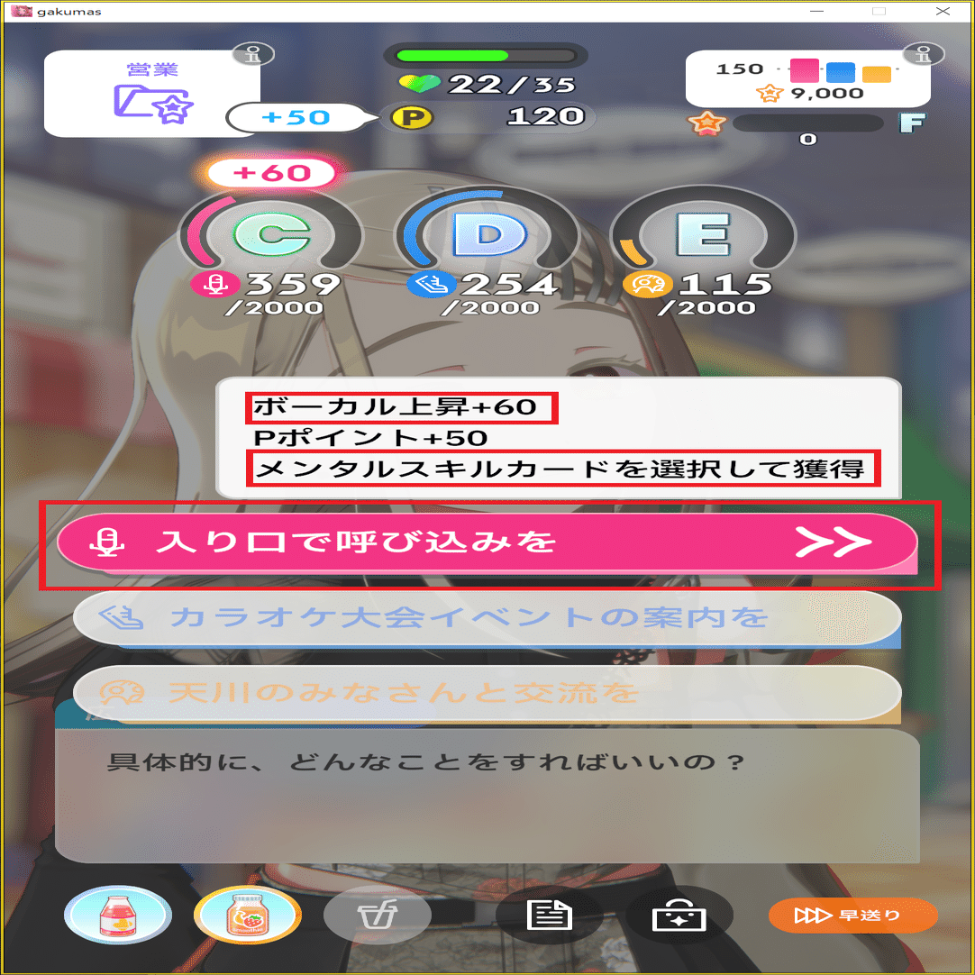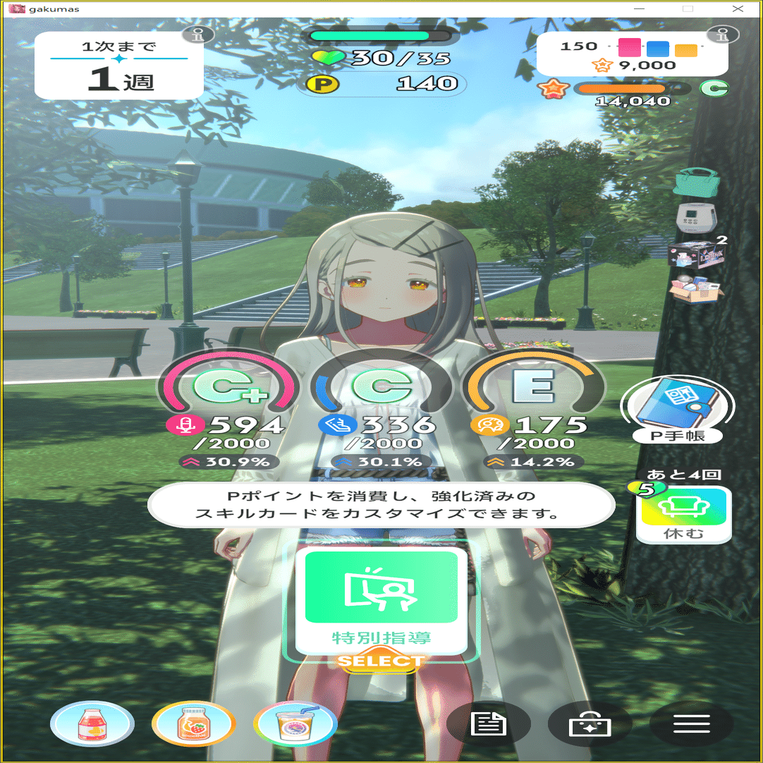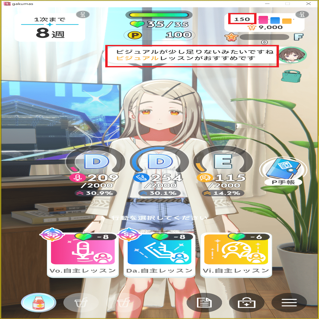 その場合はSPレッスンの踏み方だったり、営業の選択肢をステータス重視で選ぶ、1~2次試験で苦手種目でもスコアを出すことを意識してみてください。