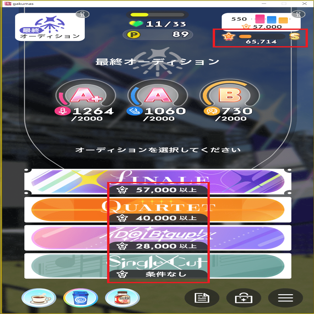 ここで中段に逃げてしまうと、最終試験の受験資格のファン数に届かない恐れがあります。