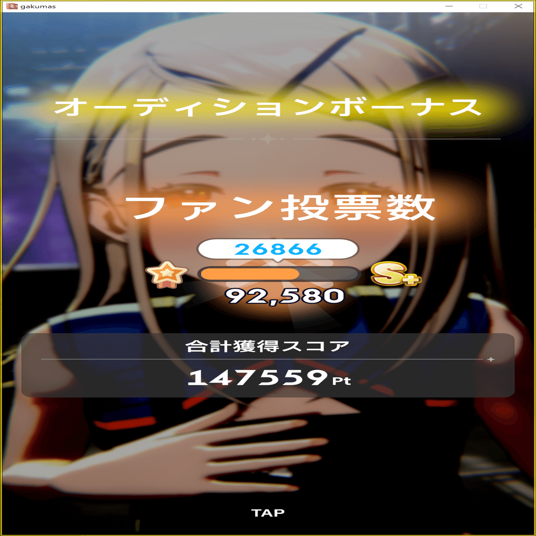 各オーディションクリア時に、オーディション中に獲得したスコアに応じて、ファン数を獲得することができます。