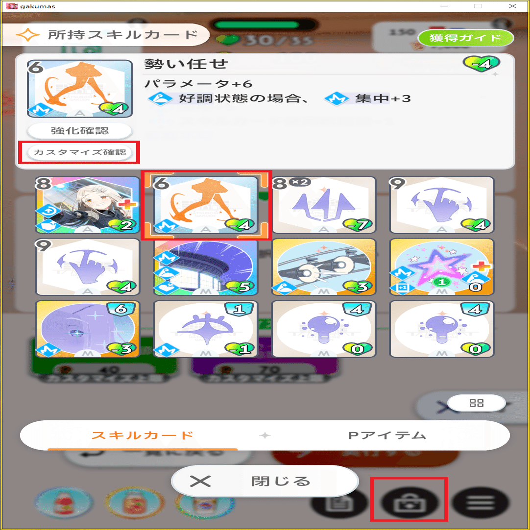 ※カスタマイズできる内容は手持ちカードの確認画面からいつでも確認することができます。
