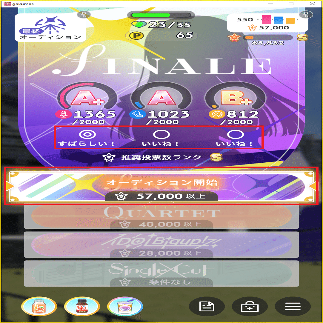 このため、ファン数を増やすために自分のステータス状況に応じたオーディションに参加することが大切となります。