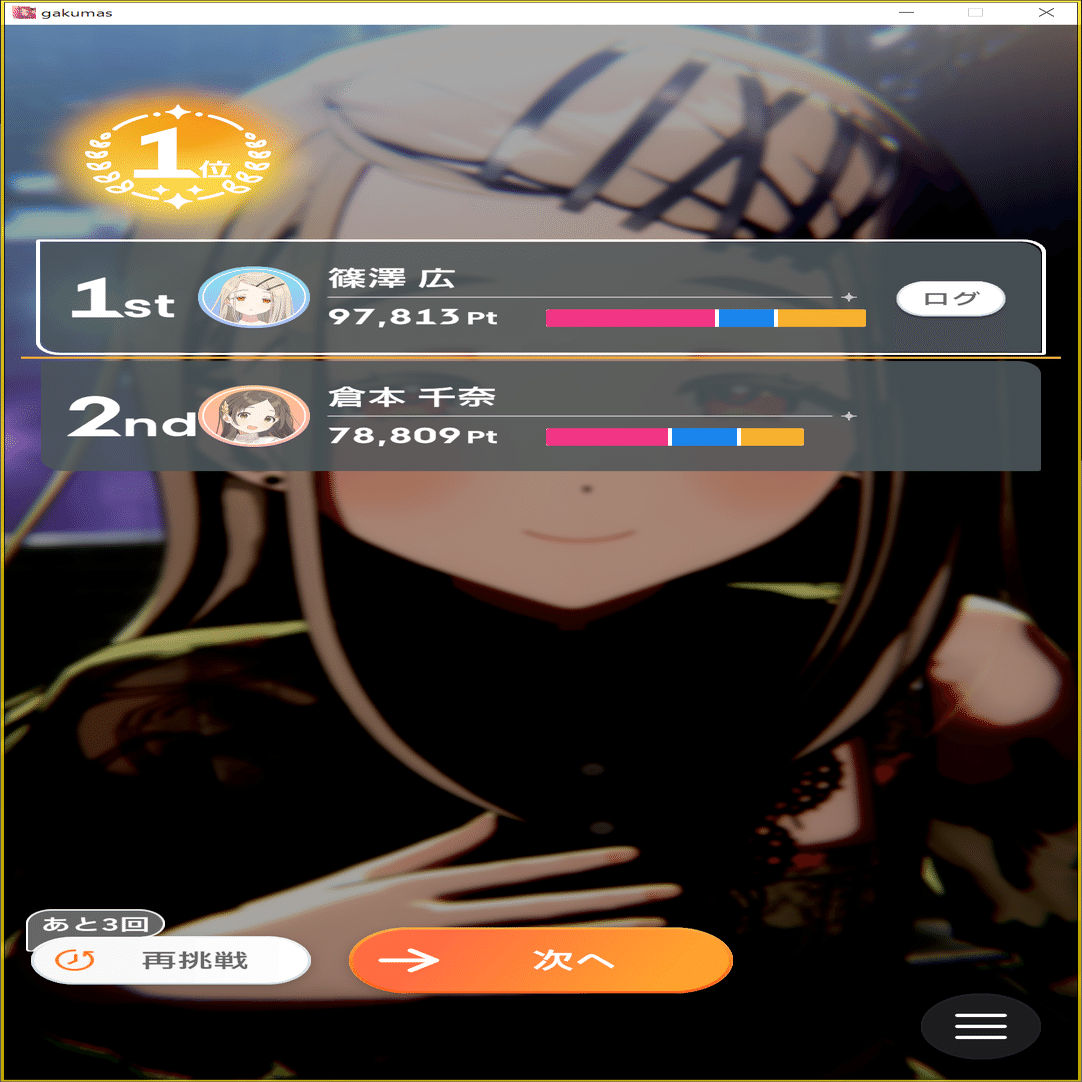 具体的には、初編や定期公演を安定して攻略できている、スコアA+