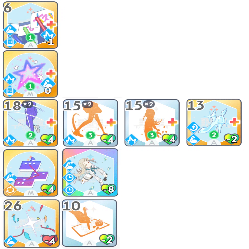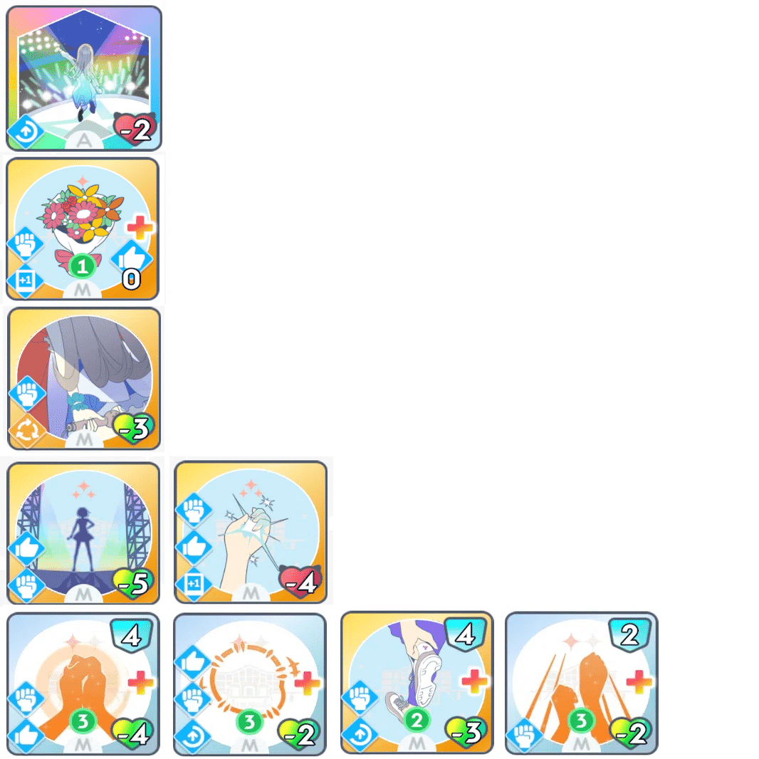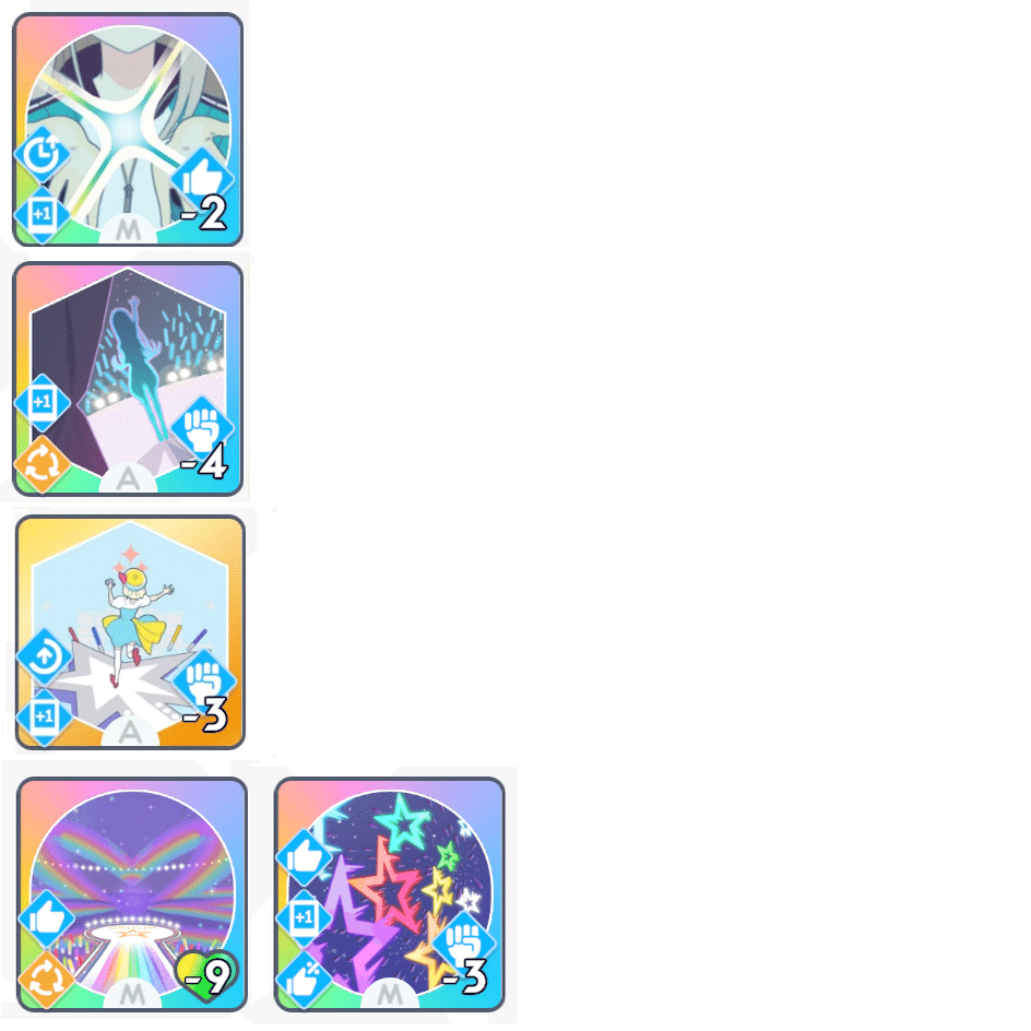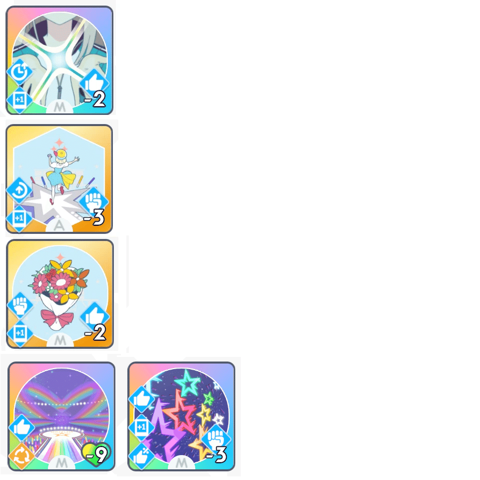 「ゆめみごこち」の使用コストの好印象が枯れないように、適度に好印象系のカードを使用していきます。(励ましやファンシーチャーム等)