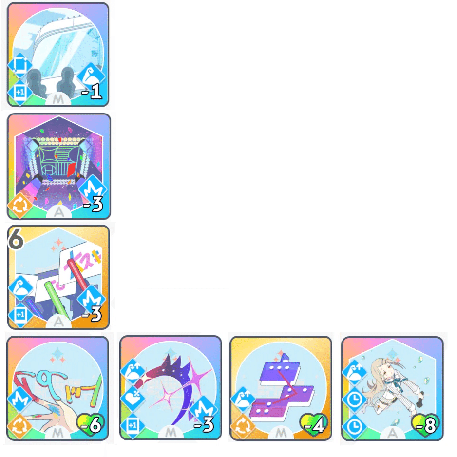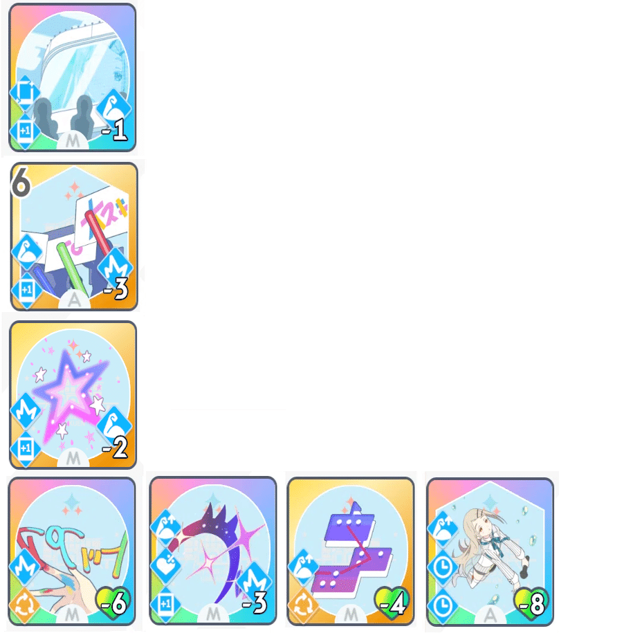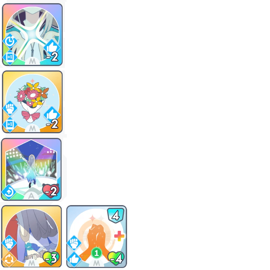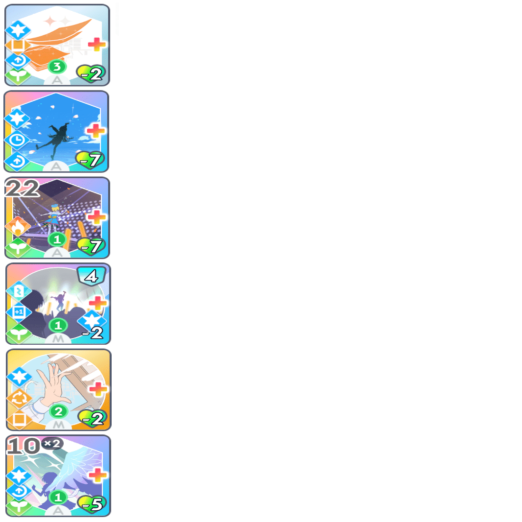 「ゆめみごこち」の使用コストの好印象が枯れないように、適度に好印象系のカードを使用していきます。(励ましやファンシーチャーム等)
