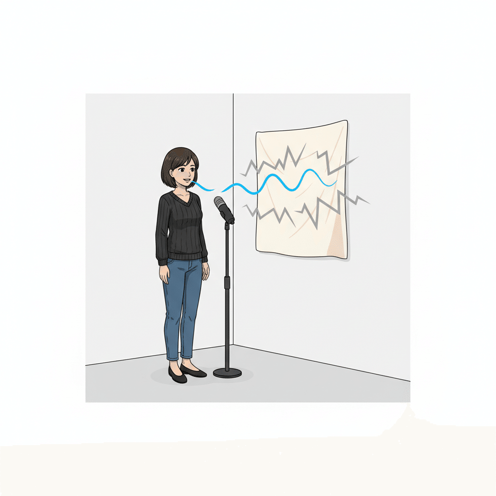 具体的には、壁や床、天井から跳ね返ってくる「反響音」が、あなたの声を不明瞭にしているのかもしれません。
