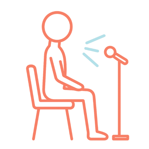 マイクの「向こう側にいる聞き手」に声を届けようとすること。