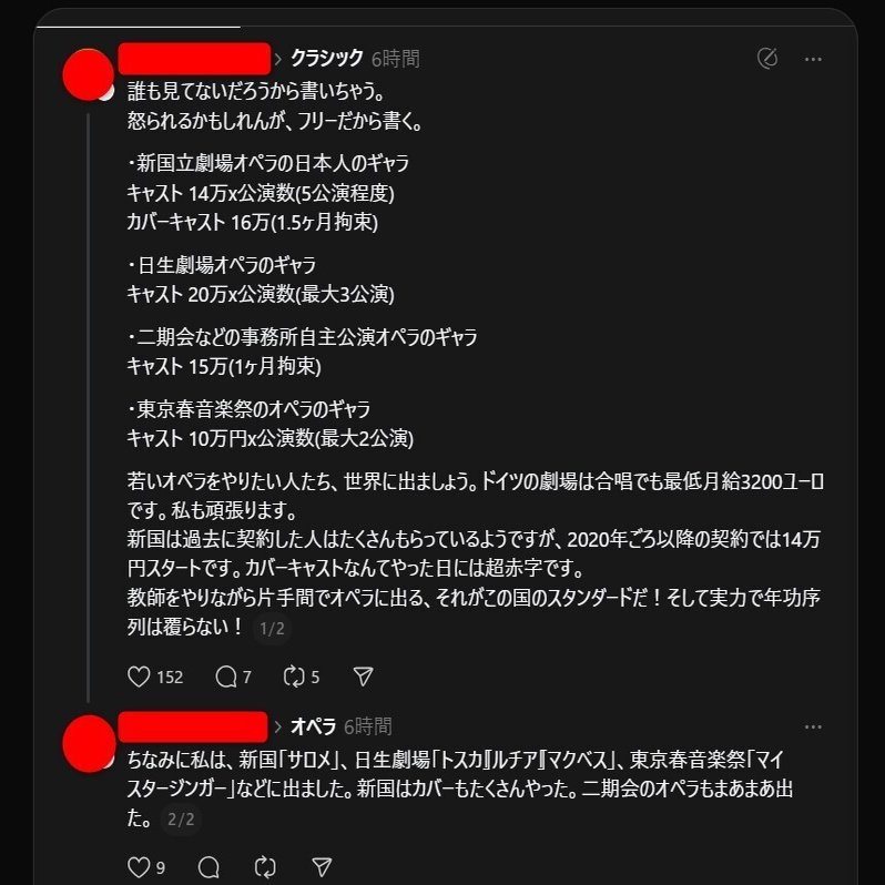 ほんの数日前、あるクラシック音楽家がThreadsに投稿したものが、クラシック音楽家界隈(というかオペラ歌手界隈)で話題になっています。