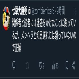 この度は、私の過去の不用意な発言とそれに付随する X での投稿内容により、関係者の皆様に多大なるご迷惑をおかけし、またご不安な思いをさせてしまった方々に心よりお詫び申し上げます。己の言動にかかる責任を自覚し、深く反省すると共に、二度とこのような間違いを犯さぬよう認識を改めていきたく存じます。
