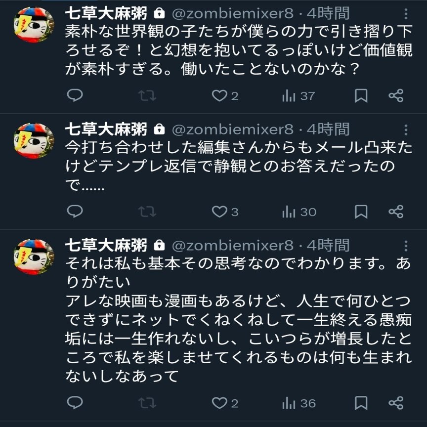結局影響力がないカスみたいなヲタクと引用クソリプマンにしか届いてなくて笑ってしまった。メンヘラが金にならない定期購読ポエム垂れ流してる間にこっちはたくさん仕事と依頼料もらってて悪いねって感じ