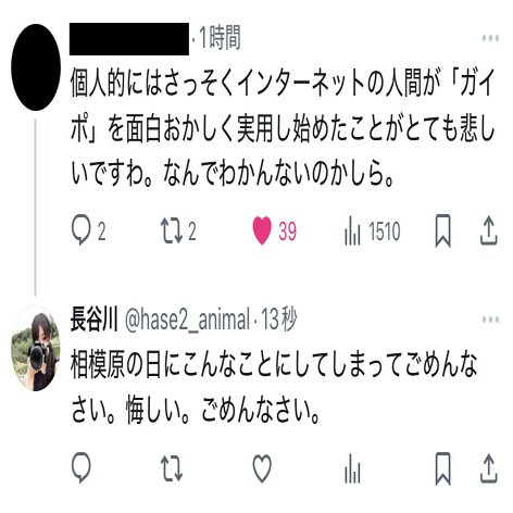 私の不適切な発言の前に、あなたの「ガイポ」という差別的な発言があったことに対する反省は1mmも無いのですね。