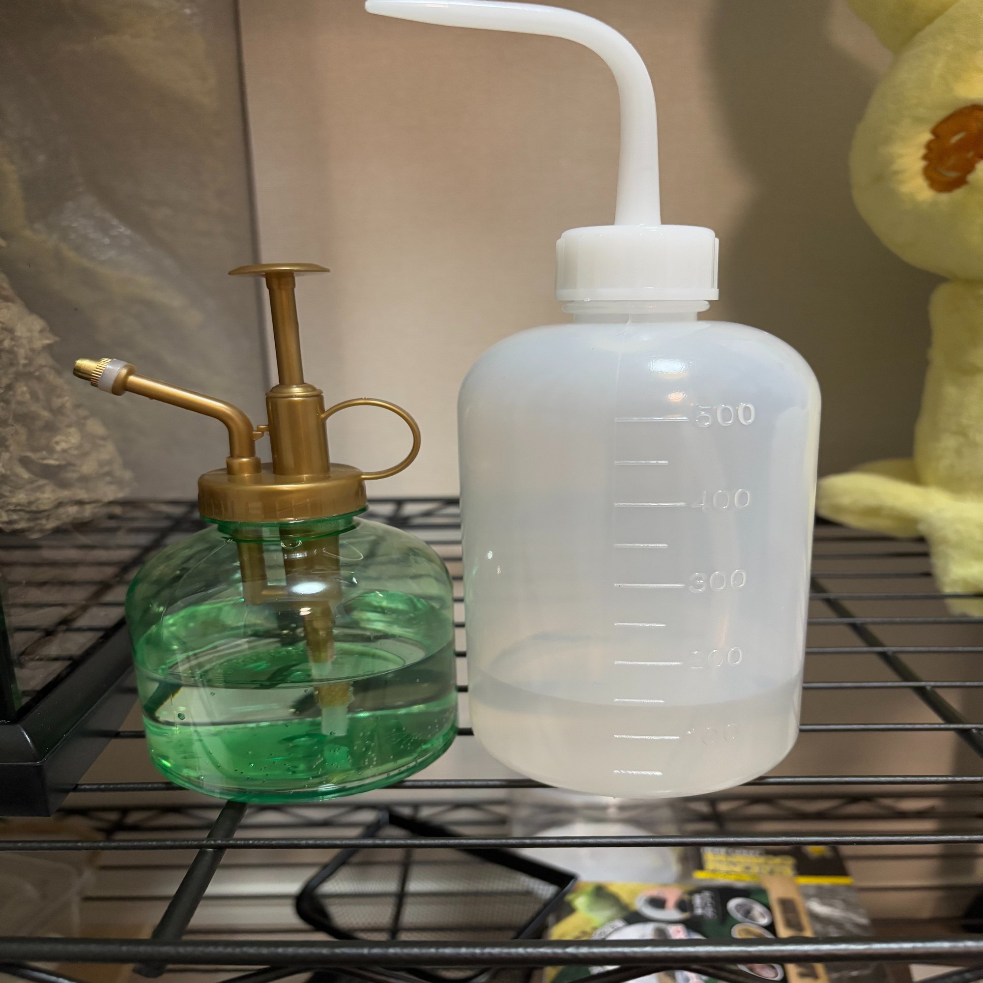 加湿には100円ショップのガーデニング用品のコーナーにある霧吹きと水差しを使用しています。