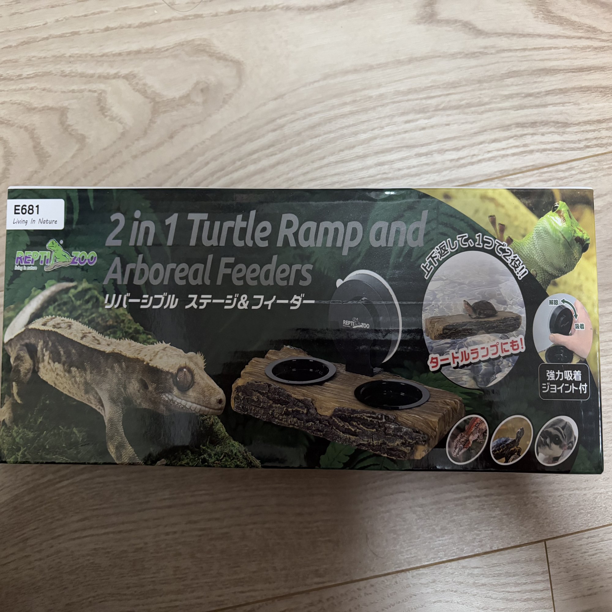 吸盤で壁面に設置するタイプのもので餌入れ、水入れとして使用しています。餌も水も入れておけば自分で摂取します。吸盤が強力なので今のところ外れたりはしていません。