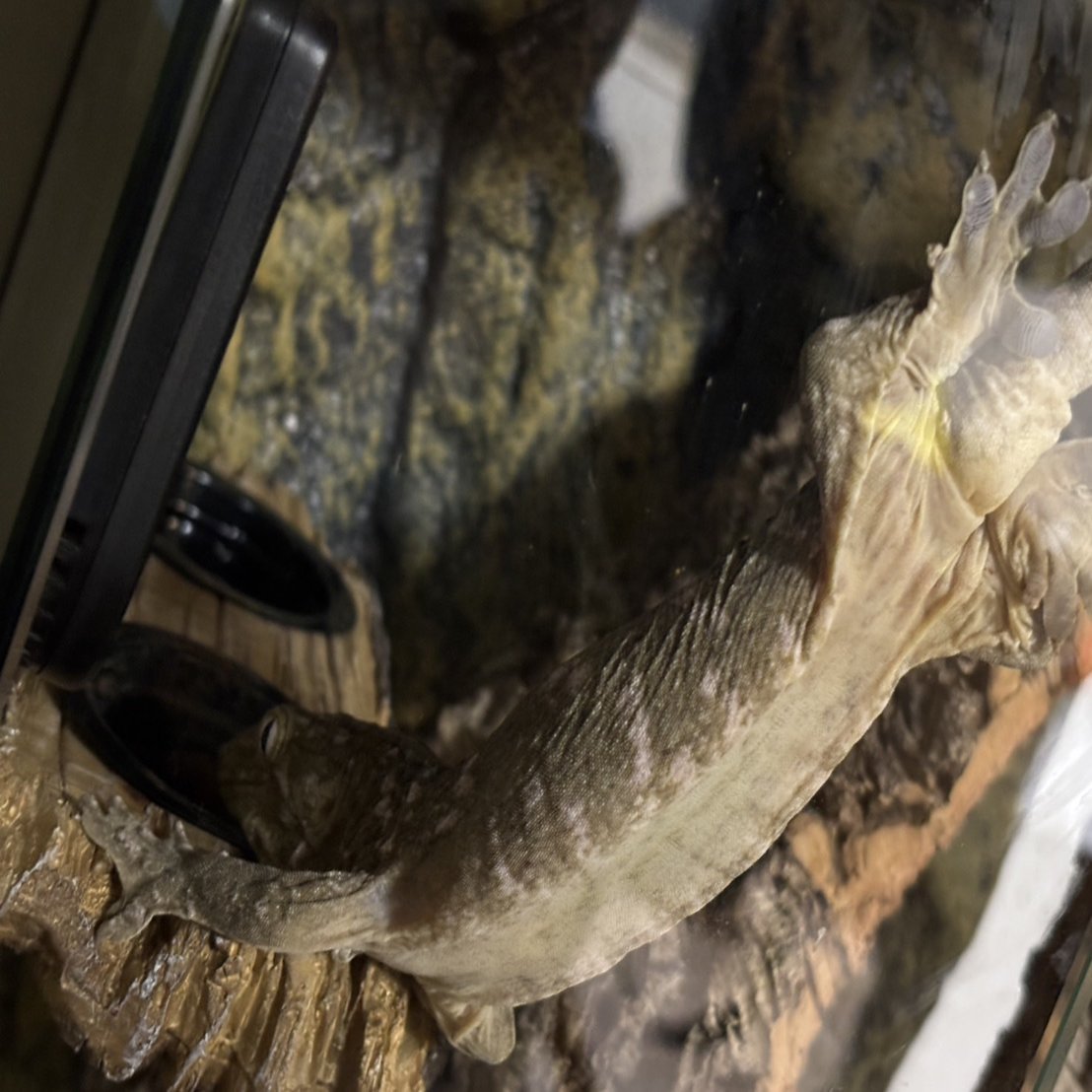 ヤモリは足の裏の無数の毛によって壁に張り付くことができます。砂など粒が細かい床材を使用すると足の裏の隙間に挟まって張り付くことができなくなることがあるそうなので避けたほうが良さそうです。