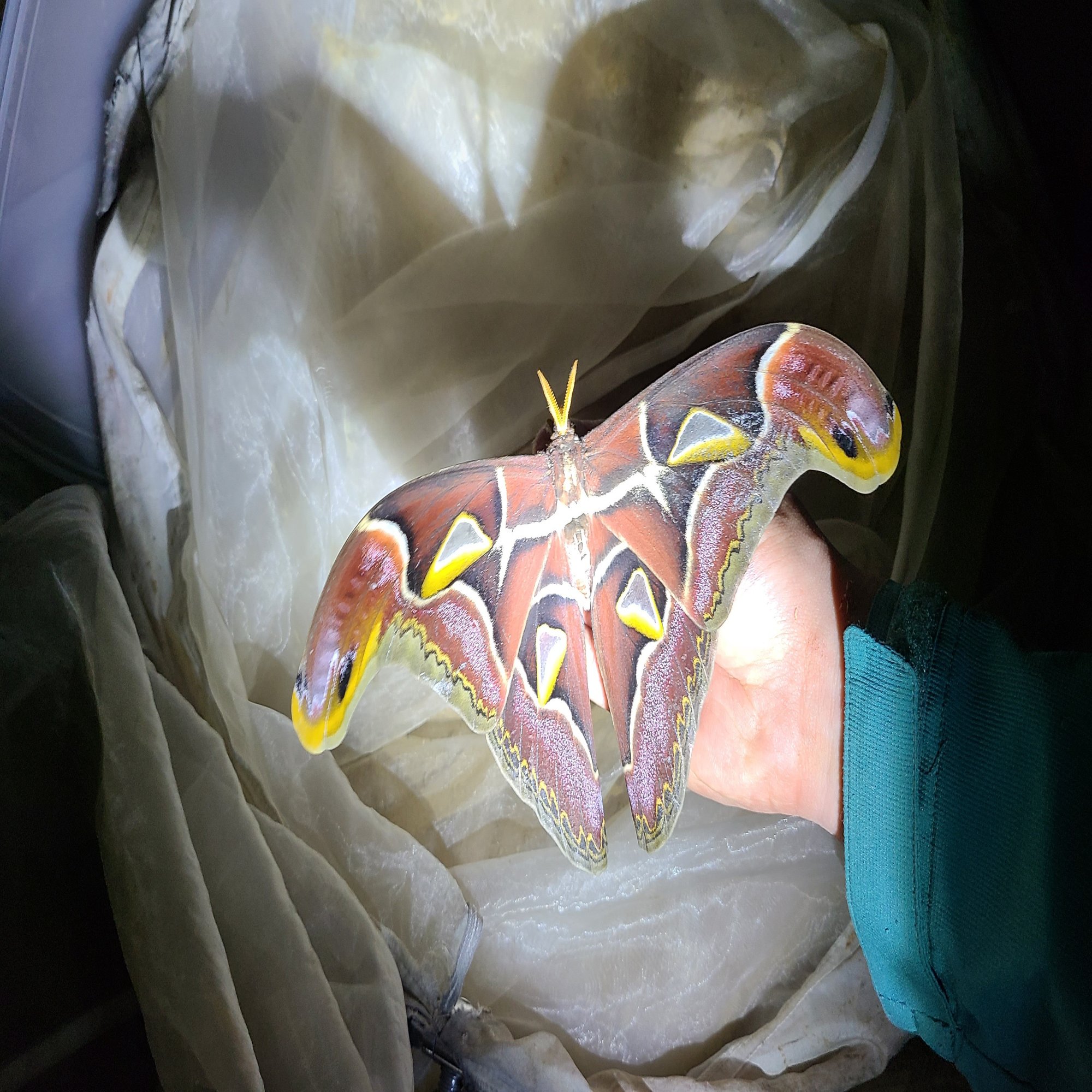 10時過ぎた頃から虫の飛来が少なくなってきたので撤収。最終日にスランゴル州でもライトラをしてアトラスを採りますが、その時とは違い蜂が一切集まらないため本当にストレスフリー。
