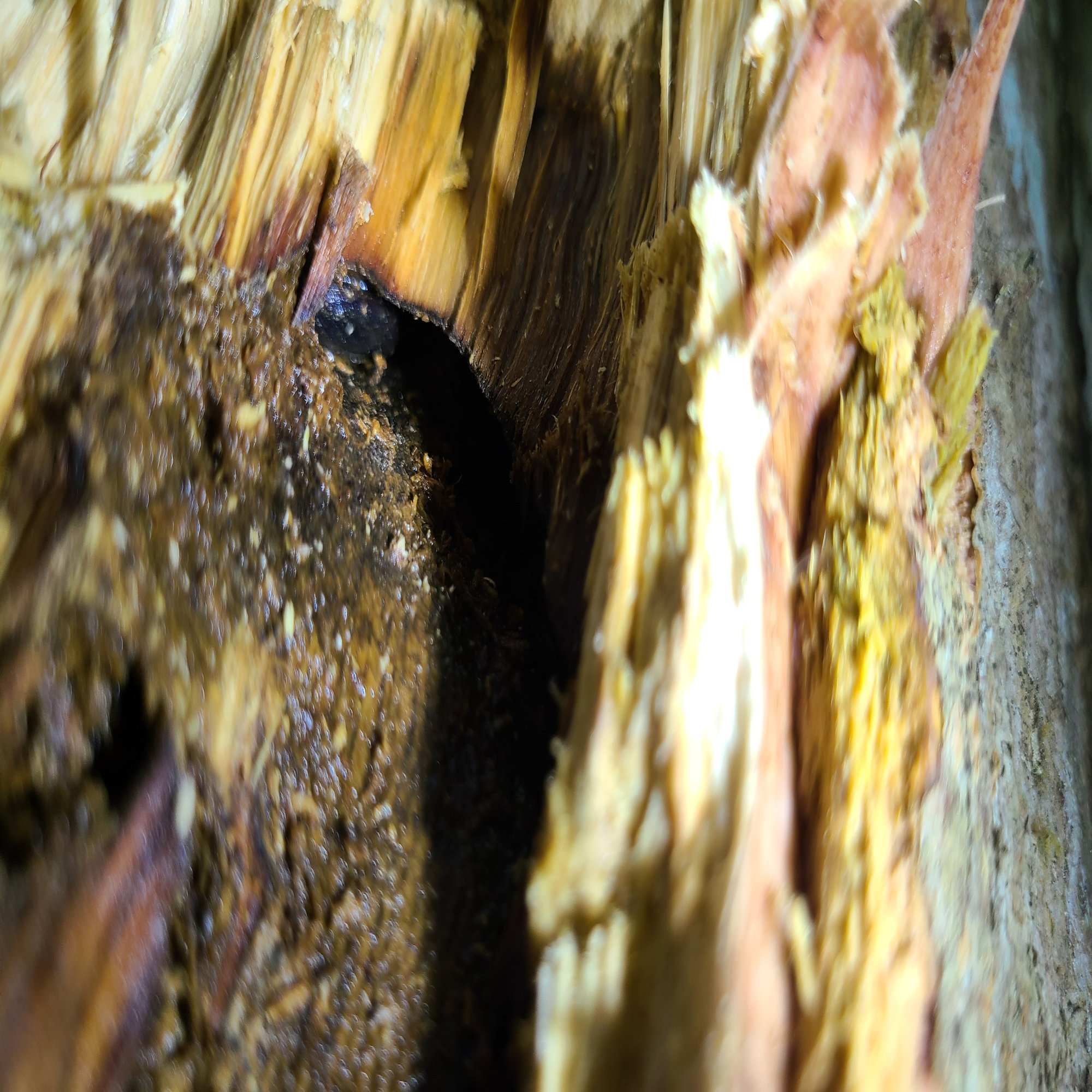樹液を格闘している後ろからナタで殺されるかと思いましたが、そんな訳もなく洞をぶっ壊し始めました。笑