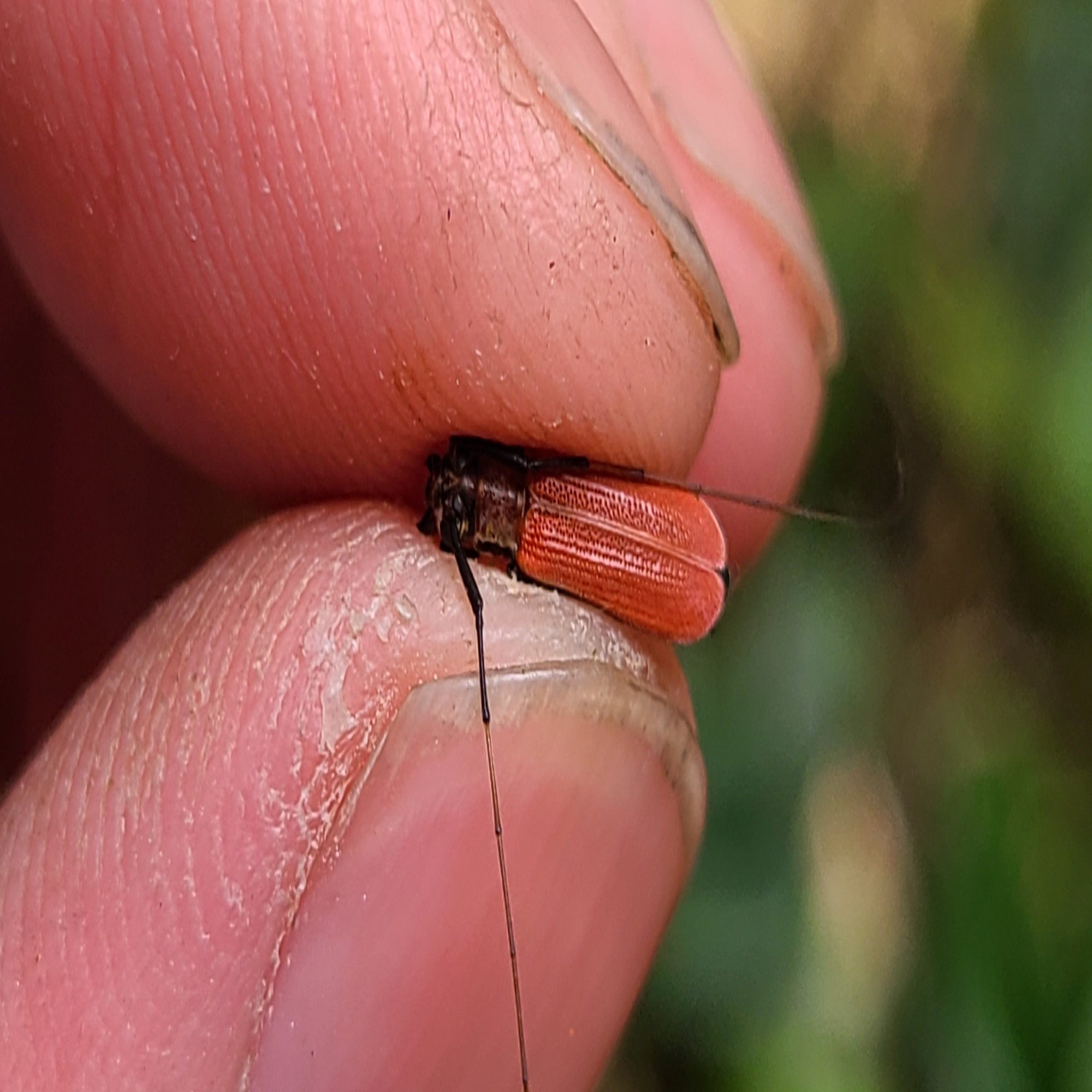 なんでも良いので採りたくなり、網を振り回しますがいきよいよく振り切ってしまい、その風圧で崖下の採りにくい位置に虫が落ちました。
