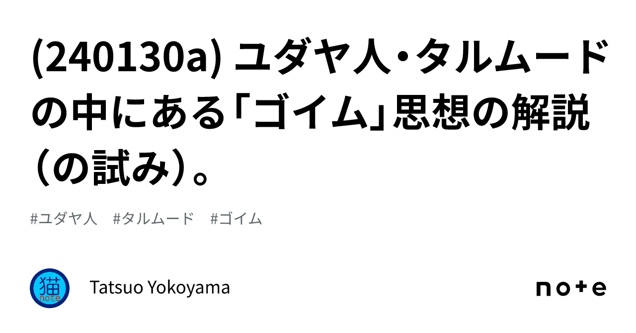 >タルムードの中に「ゴイム」という考え方(条文)・思想が、確かに存在しています。ただし、普通はこの考え方は、理由は定かでは無いが、ほとんど開示されていません。(事実上、隠されている)