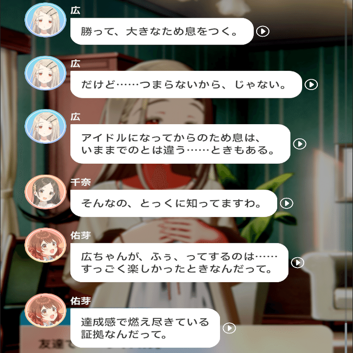 これは逆に言うと、自身のシナリオ外の広はあまりトップアイドルになることへの動機はないということなので、やや不安ではありますが・・・