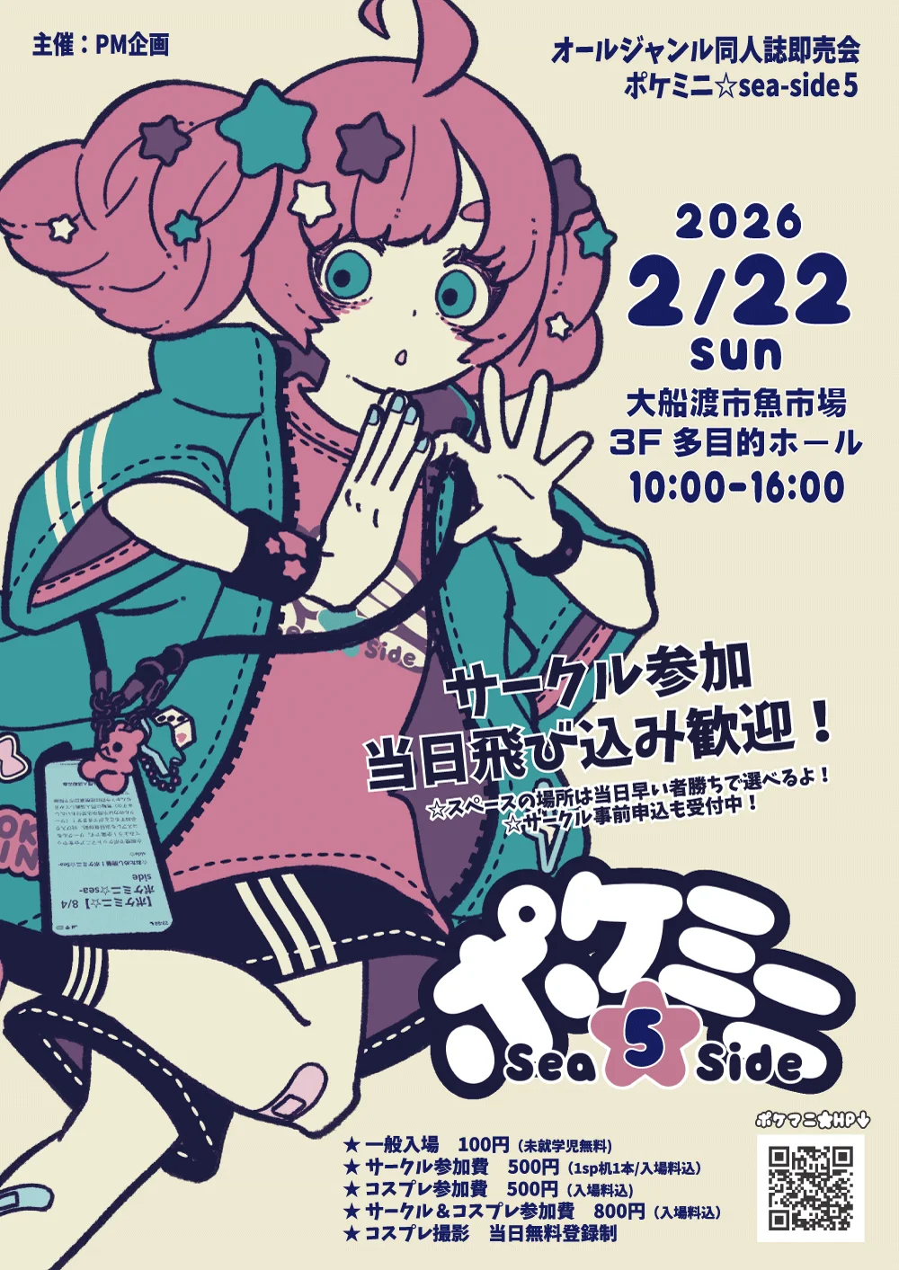 PM企画☆ポケットマニア☆@pokemani2w ago【ポケミニ☆】今回もおためし開催のお知らせちいさな同人誌即売会・ポケミニ☆sea-side5日時:2026年2月22日(日)10:00~16:00頃 会場:大船渡市魚市場 3F多目的ホール ☆今回も魚市場で開催です。☆サークル参加飛入可能!コスプレ可能!#ポケミニseaside5 #ポケミニC