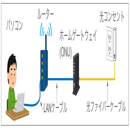 ここであらためて、「パソコン〜LANケーブル〜ルーター〜光ファイバーケーブル〜家の外のインターネット」のすべての通信が成功するか確認しておきます。