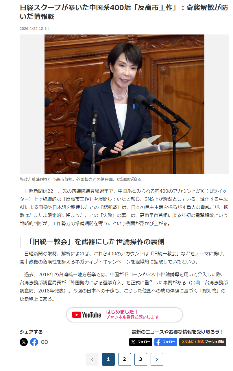 日経産経読売「みんな聞け!中国工作垢が統一教会癒着批判していたぞ!!!!!」 2026年02月23日 カテゴリ:カルト 1: それでも動く名無し 2026/02/23(月) 09:16:40.65 ID:nt2dEYap0 保守メディアの統一された動きやねhttps://www.zakzak.co.jp/article/20260222-XCOMNIWAQZBKHMVCBNKIMCFIPQ/ 引用元:https://nova.5ch.net/test/read.cgi/livegalileo/1771805800/ 【日経産経読売「みんな聞け!中国工作垢が統一教会癒着批判していたぞ!!!!!」】の続きを読む タグ :#統一教会#工作#高市早苗#調査#オールドメディア