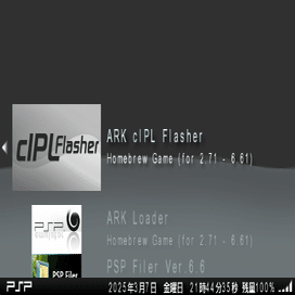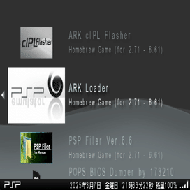 完了したら、PSPを再起動して ARK-4で起動していることを確認してください。