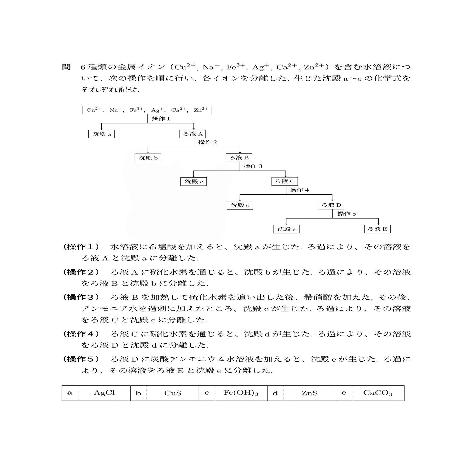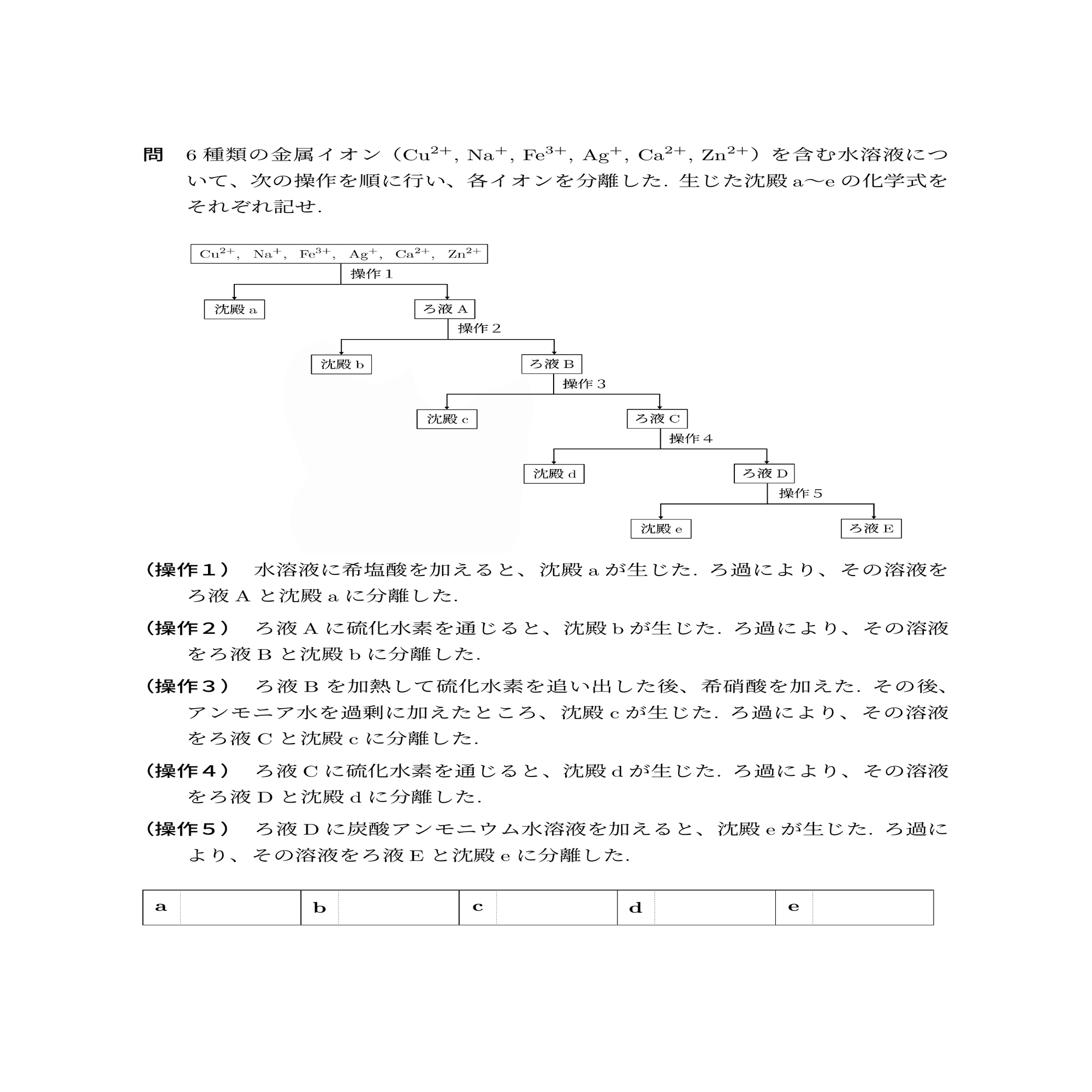 【無機化学】金属イオン分離の練習問題①