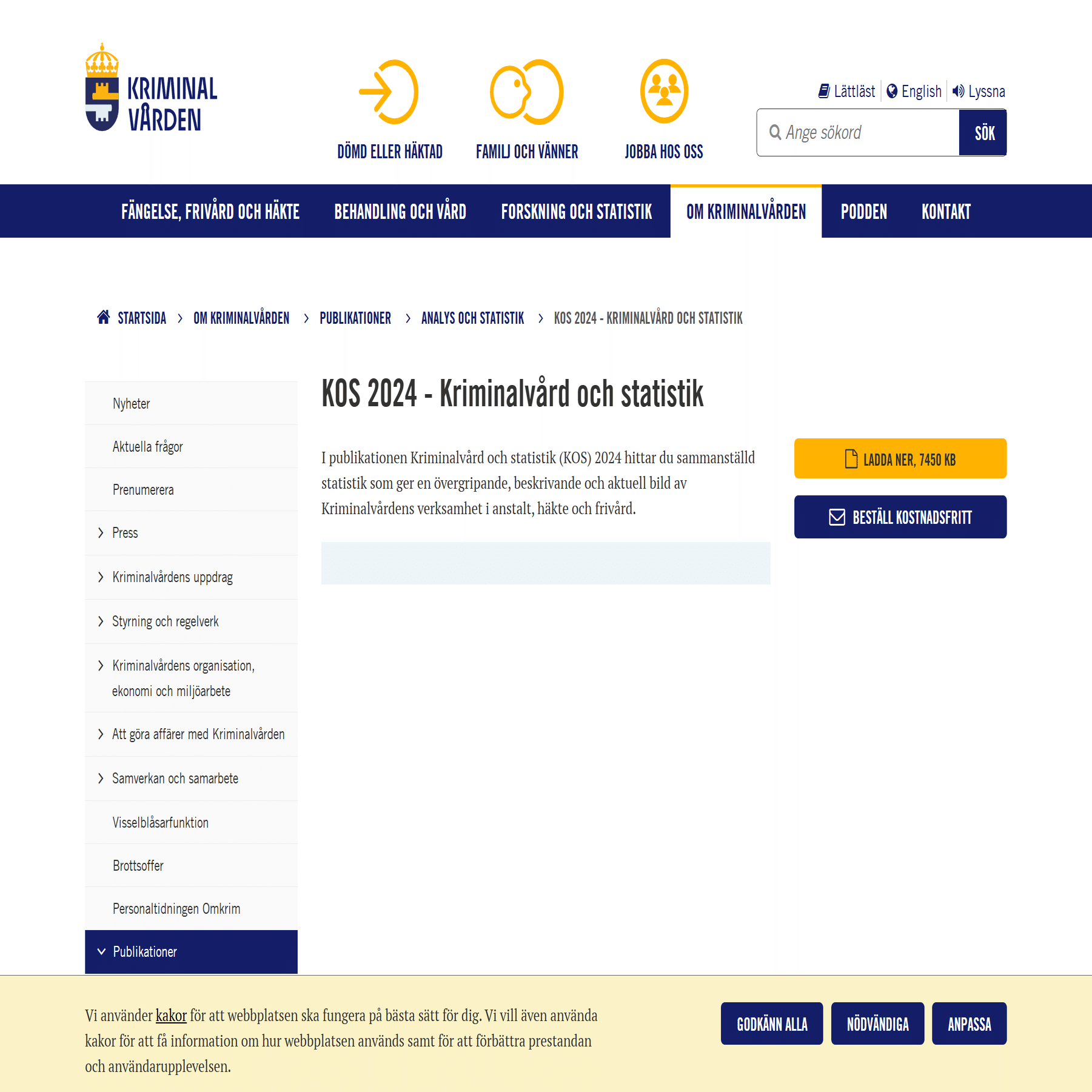 KOS 2024は、Kriminalvårdenの公式ウェブサイトにおいて、誰でもダウンロード可能な形で公開されている。