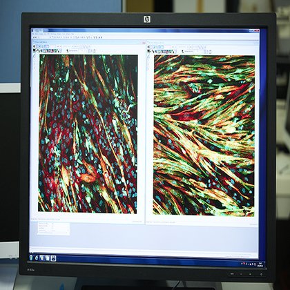 「私の研究手法はシンプルで、細胞を培養しているディッシュ内に小型のスピーカーをくっつけるようにして音波を一定時間照射した後、照射した細胞としていない細胞の違いを比較するというものです。まず数時間から1日程度の短時間で観察できる変化として、音波を照射した細胞内では特定の遺伝子群の働きが活発になることがわかってきました。もう少し長い時間、数日から1週間程度となると細胞の分化も音波の影響を受け、例えば筋肉のもとになる細胞(筋芽細胞)に音波を照射すると筋肉への分化効率を高めることがわかりました。