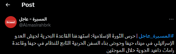 Elsewhere for di region, Bahrain state news agency report say di service centre of di US Navy 5th Fleet, wey dey Bahrain, dey "subjected to a missile attack".