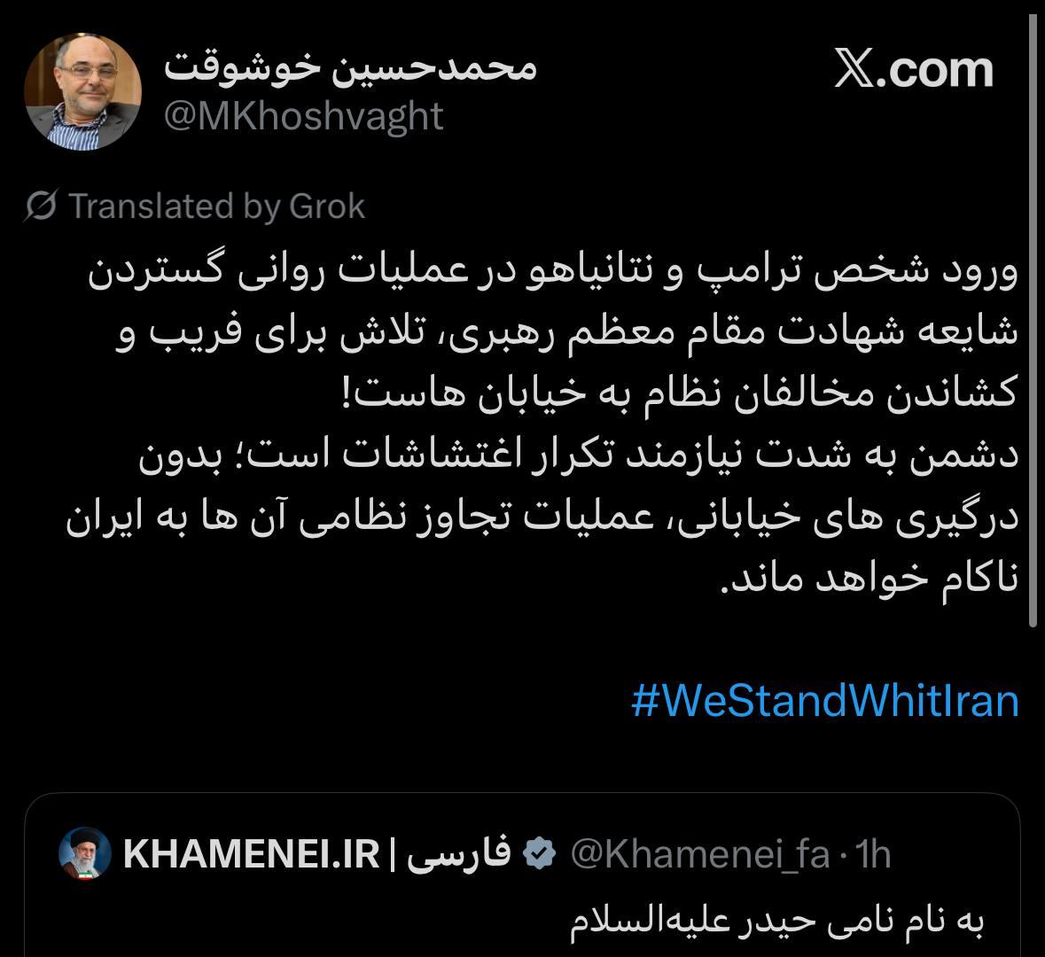 >E also tell Iranian pipo to remain for shelter and say make dem no comot dia houses.