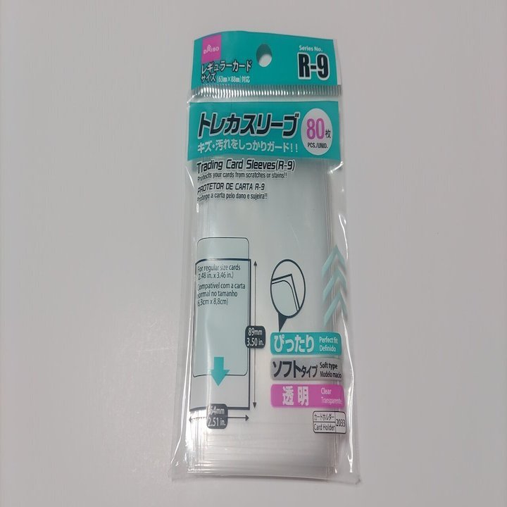 調べたカードの大きさに基づき、ダイソーでスリーブを調達した。