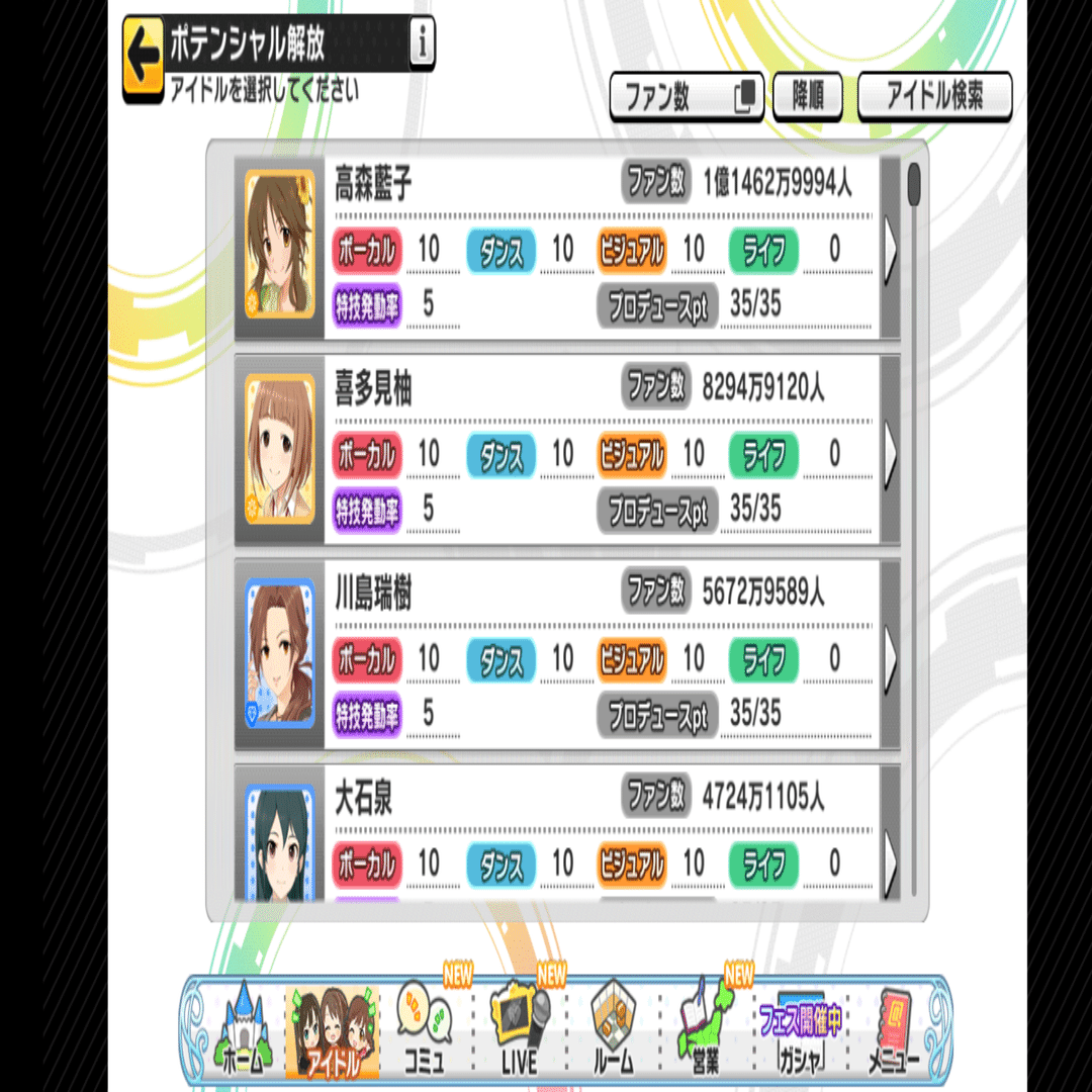 キャラのカード → アイドル