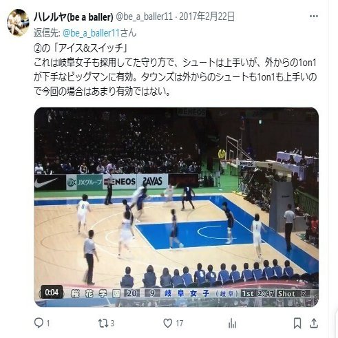 これは岐阜女子も採用してた守り方で、シュートは上手いが、外からの1on1が下手なビッグマンに有効。タウンズは外からのシュートも1on1も上手いので今回の場合はあまり有効ではない。 pic.twitter.com/IiPlASzRbI
