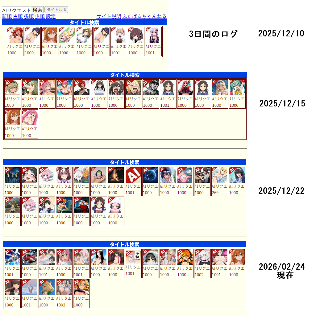 | … | PLAY 695 無念 Name としあき 26/03/01(日)13:23:11 No.1390840216 delAI使う前からあるな2000年より前に |