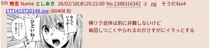 | … | PLAY 736 無念 Name としあき 26/03/01(日)19:38:01 No.1390926804 delテンプレ拡大解釈する自分ルールちゃんはどこにでも湧くので |