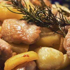 2,1の鍋に薄切りにして水にさらした馬鈴薯、ざく切りにしたトマトを入れ軽く一混ぜし、水を半カップ入れて沸騰したら蓋をし、弱火で蒸し煮する。