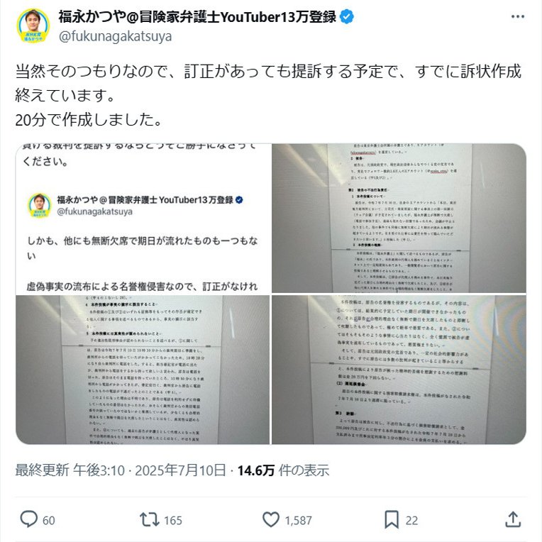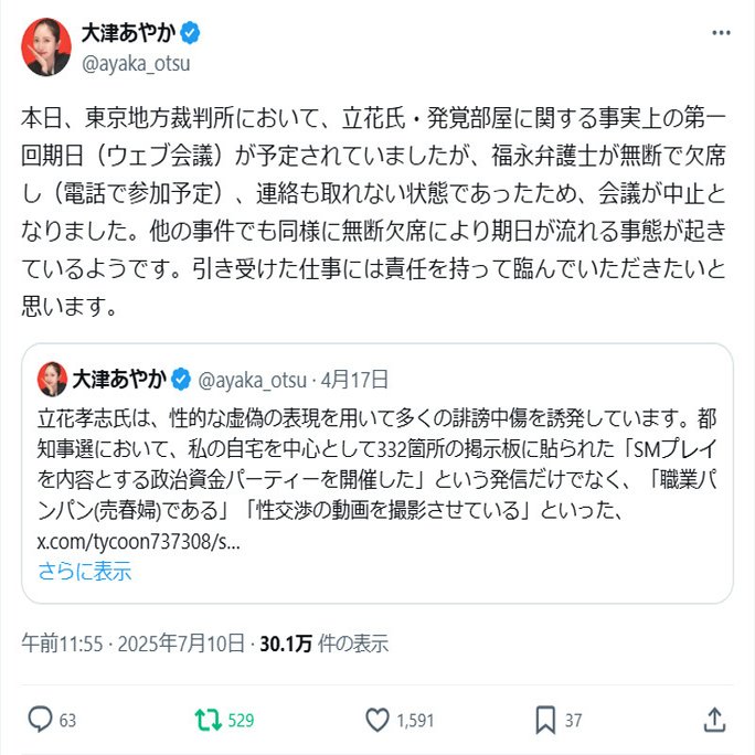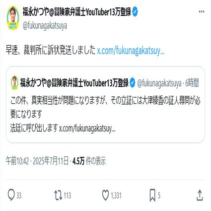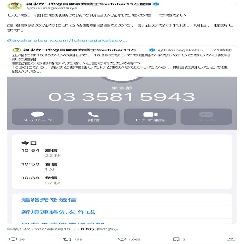 福永弁護士は過去のX投稿で「今日は初日だし眠いし、すっぽかそう!」と投稿もされていましたw 先月も三尊さんの裁判を忘れていました。タイにいました。他にもあるのではないでしょうか?